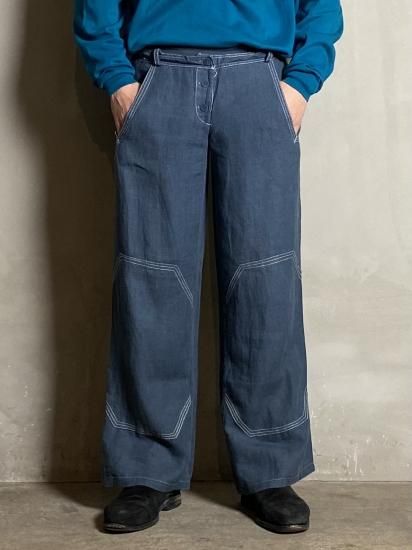Date & Brand ¡Õ1990¡Çs Vintage linen Stitch Trousers Blue-gray / Made in ITALIE