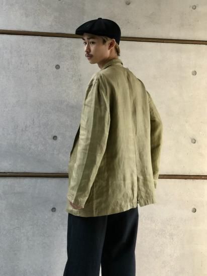 ヴィンテージの英国軍グリーンデニムをリネンで作るとこちらの様な質感になるのかもしれません。