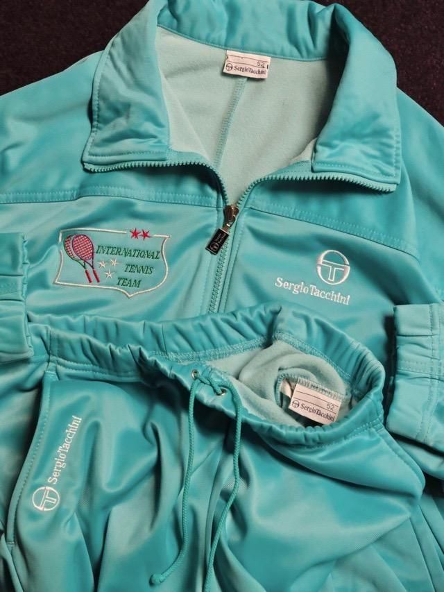 ¥¤¥¿¥ê¥¢¤òÂåɽ¤¹¤ë¥Æ¥Ë¥¹¥¦¥§¥¢¥Ö¥é¥ó¥É¤Ç¤¢¤ë"SERGIO TACCHINI"¤Çºî¤é¤ì¤¿1980ǯÂå¤Î¥»¥Ã¥È¥¢¥Ã¥×¡£¤é¤·¤µ¤Ë°î¤ì¤ë¿§»È¤¤¤¬ÁÇŨ¤Ç¤¹¡£